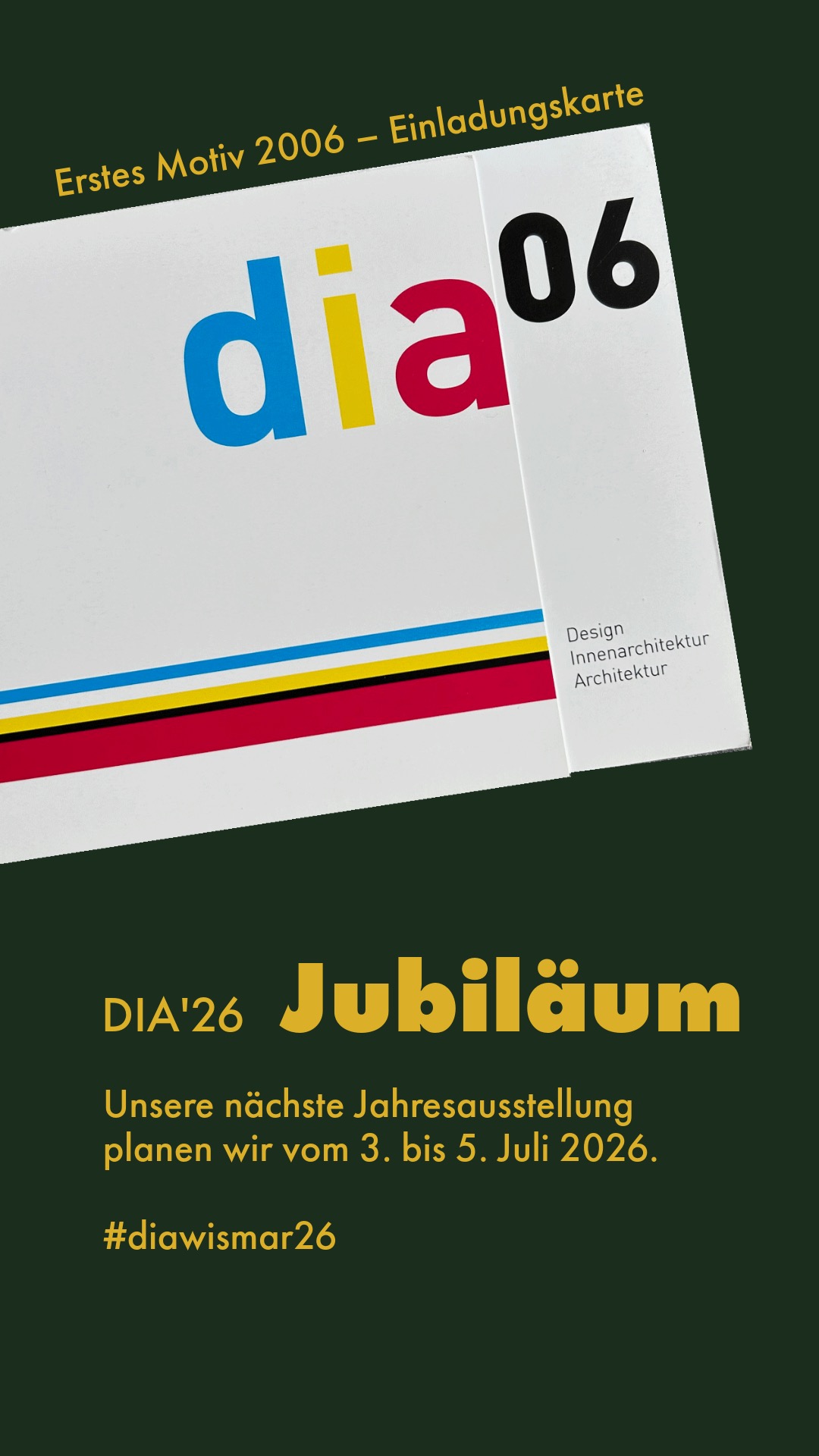 Bis zum nächsten Mal. Jahresausstellung DIA'26, unser 20. Jubiläum, Freitag bis Sonntag, 3. bis 5. Juli 2026 auf dem Hochschul-Campus Wismar. #diawismar26