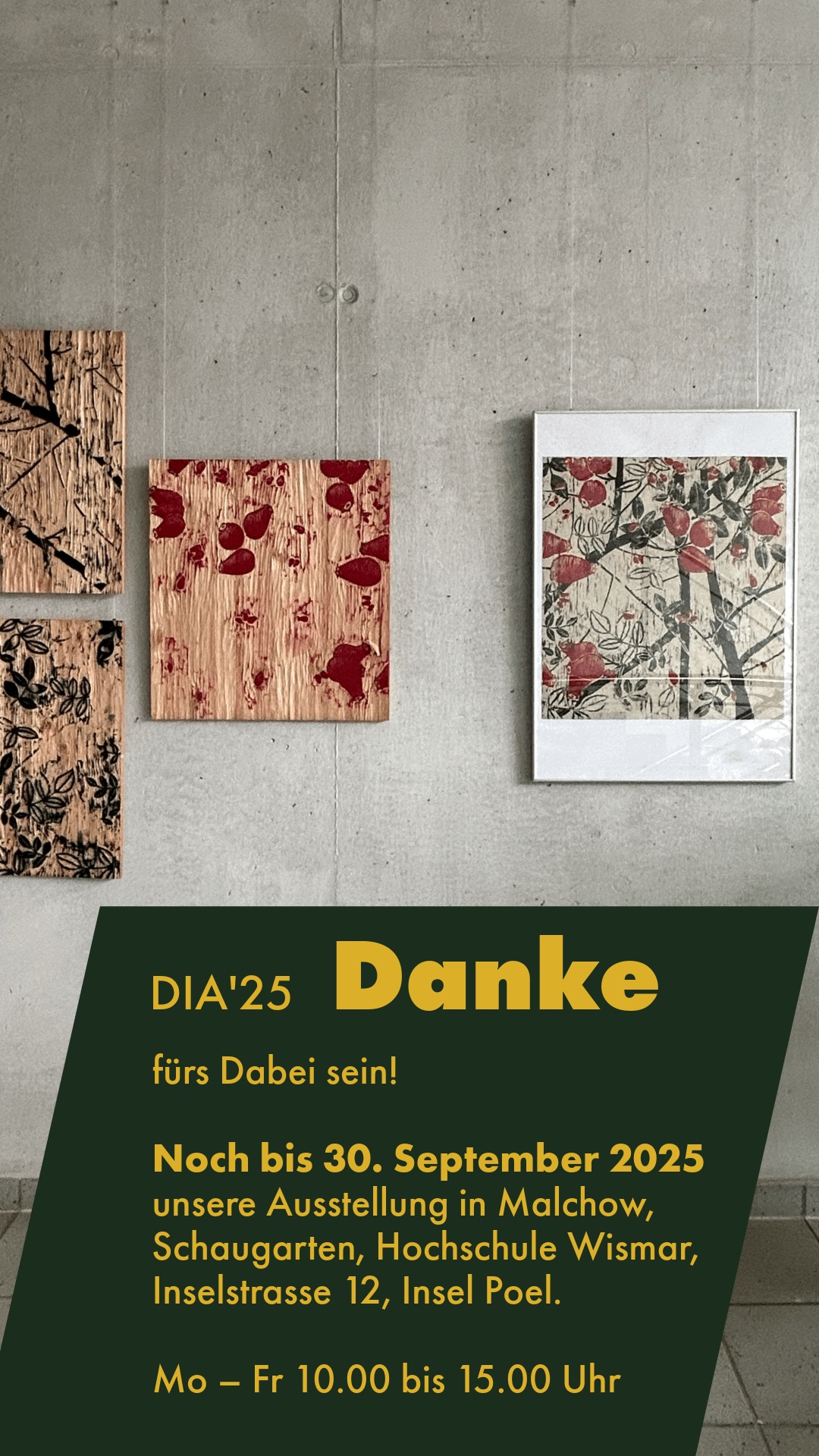 Vom 4. bis zum 6. Juli 2025 haben wir ganz traditionell unsere Jahresausstellung DIA auf dem Campus der Hochschule Wismar gezeigt. Externe Ausstellungsorte mit verschiedenen Lauf- und Öffnungszeiten inklusive. Wir zeigen auf der Insel Poel noch bis Ende September 2025 eine der externen Ausstellungen.