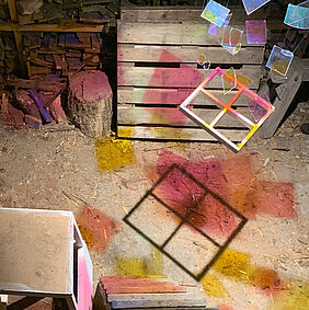 Objects in daylight await visitors to the gallery "wolkenbank kunst+räume Projektraum" (Dorfstraße 5/7, 23992 Klein Warin). Project supervision by Prof. Bettina Menzel and Prof. Jan Blieske. For opening hours and contact information, please see the gallery's homepage.