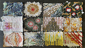 2024, studies and collages made from various wrapping papers, paste, each around 42 x 30 cm