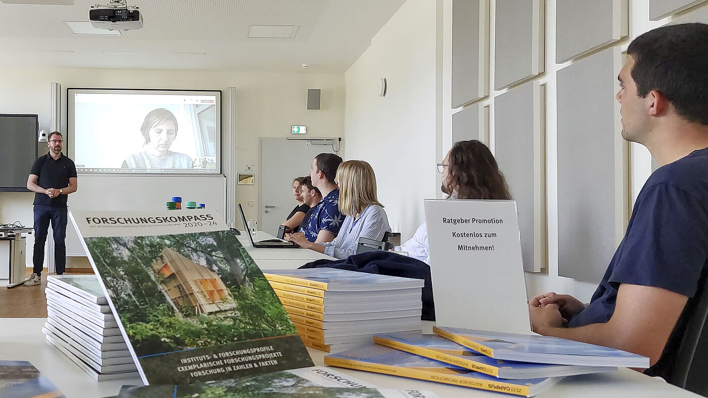 In her presentation, architect Ivett Flores-Núñez (supervisor: Prof. Martin Wollensak) showed how she is developing concrete strategies for the energy transition in the construction sector with her doctoral project “Building Stock – Low Energy Demand Model through Renovation Strategies for the Building Envelope.” The work of Niklas Huhs (supervisor: Prof. Dr.-Ing. habil. Olaf Simanski), on the other hand, contributes to the use of AI in the evaluation of medical data in the context of ambient assisted living, i.e., technology-based support for elderly or vulnerable people in their everyday lives through intelligent systems integrated into the living environment. Lisa Marie Rickerts' doctoral project (supervisor: Prof. Dr.-Ing. Tassilo-Maria Schimmelpfennig) also falls within the field of medical technology. She is working on “Process engineering and technology for the cutting production of individual bone implants” to enable precise adaptation to the individual anatomy of patients.