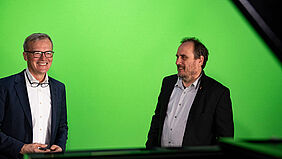 Prof. Michael F. Rohde (initiator Light Symposium) and Prof. Achim Hack (Dean of the Faculty of Architecture and Design) in the production studio of Wismar University of Applied Sciences before the joint opening speech of the Light Symposium 2020/21.