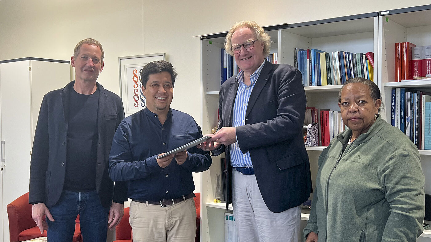 On Monday, 15th April 2024, the first project week of the 2024 summer semester began at the Faculty of Architecture and Design at Hochschule Wismar, University of Applied Sciences. Students from the Pontificia Universidad Católica del Ecuador (PUCE for short, the Pontifical Catholic University of Ecuador, private university in Quinto) are also guests. They will take part in the workshop on "Sustainable and climate-friendly building with traditional and innovative construction methods and technologies" with Prof Jan Blieske from the Master's degree programme in Architectural Lighting Design. As part of the workshop, solutions for this type of construction will be developed and realised in the university's own workshops. Lecturers from Ecuador will also be guests. These include Prof. Jorge Andrade Benítez and Assist. Prof Esperanza Muñoz. The two Ecuadorian lecturers were received together with Prof. Blieske by the Rector of Hochschule Wismar, University of Applied Sciences, Prof. Dr Bodo Wiegand-Hoffmeister, for the signing of the new cooperation agreement.