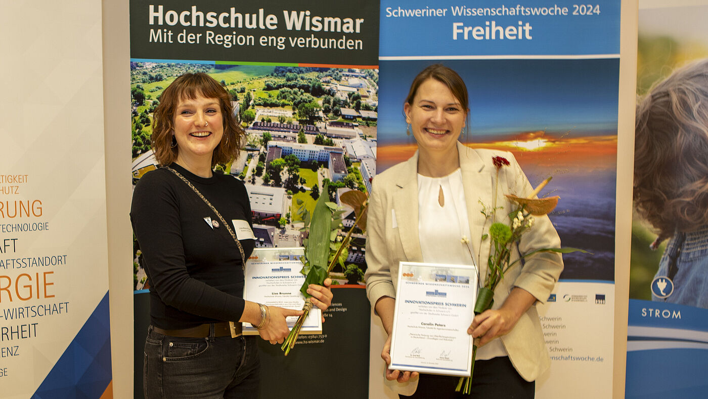 Carolin Peters impressed with her master's thesis on the sustainable use of heat from surface waters, which can enable significant savings in fossil fuels. Lisa Brune received the award for her thesis, which creatively explores the East-West issue in Germany through interviews and the cooperative game "Dämmerland" and promotes dialogue between East and West.