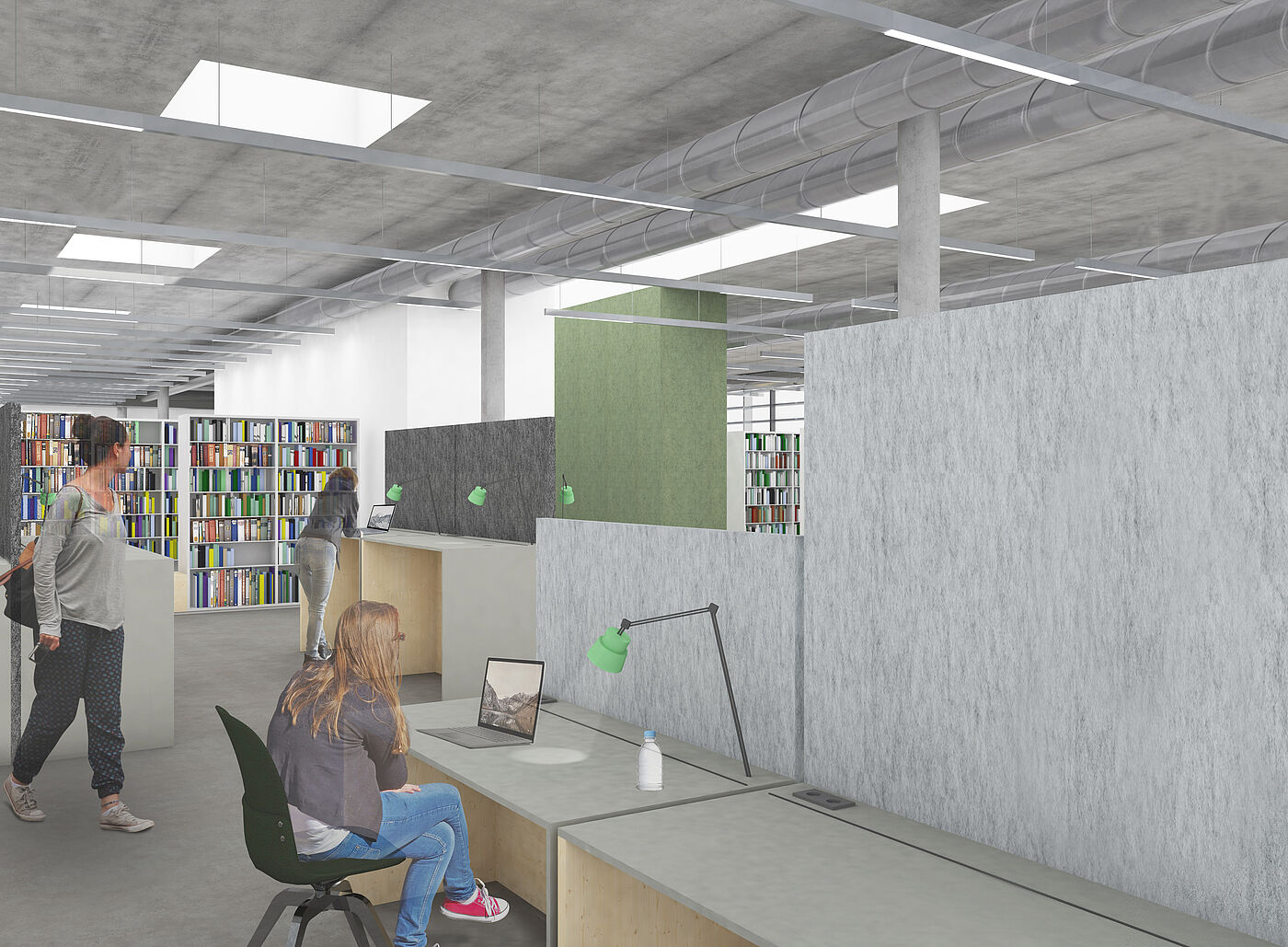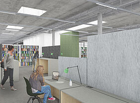 Die Bibliothek bietet als neues Herzstück des Hochschulcampus einen Ort, der konzentriertes Arbeiten und kommunikativen Aufenthalt vereint.