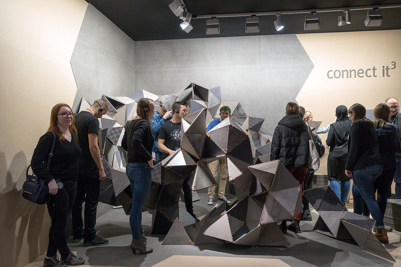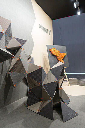 Analog – Interaktiv – Zusammen. Das sind die drei Schlüsselwörter, die der Messestand "connect it3" auf der Domotex 2019 behandeln wird. Mit unterschiedlichen Teppich- und Bodenbelags Haptiken werden Verbindungen geschaffen und dabei eine Interaktion zwischen dem Messebesucher und der Materialität kreiert. Zusammen etwas entstehen lassen, was ineinandergreift und aufeinander aufbaut, gemäß dem Leitthema: create ́n ́connect.