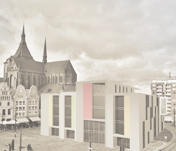 Gegenstand dieses Entwurfes ist die Schließung des Neuen Marktes in Rostock auf seiner Nordseite durch einen Bebauungsvorschlag mit der Nutzung als Haus des Buches.