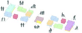 Durch sechs unterschiedliche Baufelder mit unterschiedlichen Identitäten, Qualitäten und Gebäudetypologien entstehen abwechslungsreiche Räume und eine vielfältige Bebauung, welche für jeden Lebensentwurf ein Zuhause bieten, zu einer sozial durchmischten Bewohnerschaft beitragen und ein generationsübergreifendes Wohnen sicherstellen.