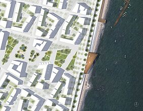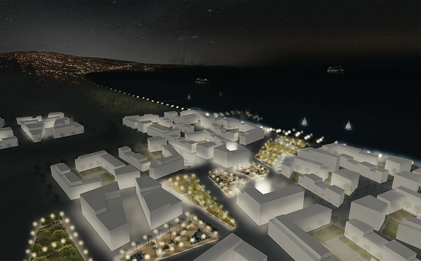 In direkter Uferlage an der spanischen Mittelmeerküste wird ein städtebaulicher Entwurf vorgeschlagen, der sowohl Wohnen als auch Arbeiten vereint und darüber hinaus die Ansiedlung von Gewerbe, Hotellerie sowie Kulturangeboten zulässt. Ziel ist es, ein neues Stadtquartier mit einer attraktiven, maritimen Umgebung zu verknüpfen. Gleichzeitig gilt es, das neue Quartier mit den umliegenden urbanen Fragmenten zu verweben sowie die unterschiedlichen Landschaftsräume von Meer, Sierra und Stadtpark miteinander zu vernetzen, um auf diese Weise eine Einheit und eine Identität des Areals zu schaffen. Als Grundlage des Entwurfsprinzips wird einerseits behutsam mit der vorhandenen Topographie gearbeitet und diese als Ausgangspunkt genommen. Andererseits werden Bezugslinien der Umgebung aufgegriffen sowie verschiedene Sichtachsen und Blickbeziehungen zum Meer inszeniert. Basierend auf diesen zentralen Themen sind die Baufelder von dichter Bebauung geprägt und weisen einen urbanen Charakter auf. Durch die aufgelöste Blockstruktur entstehen gleichzeitig differenzierte private Grünflächen im Inneren. Die gemischte Nutzung des Areals erzeugt dabei verschiedene Spannungsfelder im Stadt- und Landschaftsraum mit unterschiedlichen Intensitäten und Dichten.