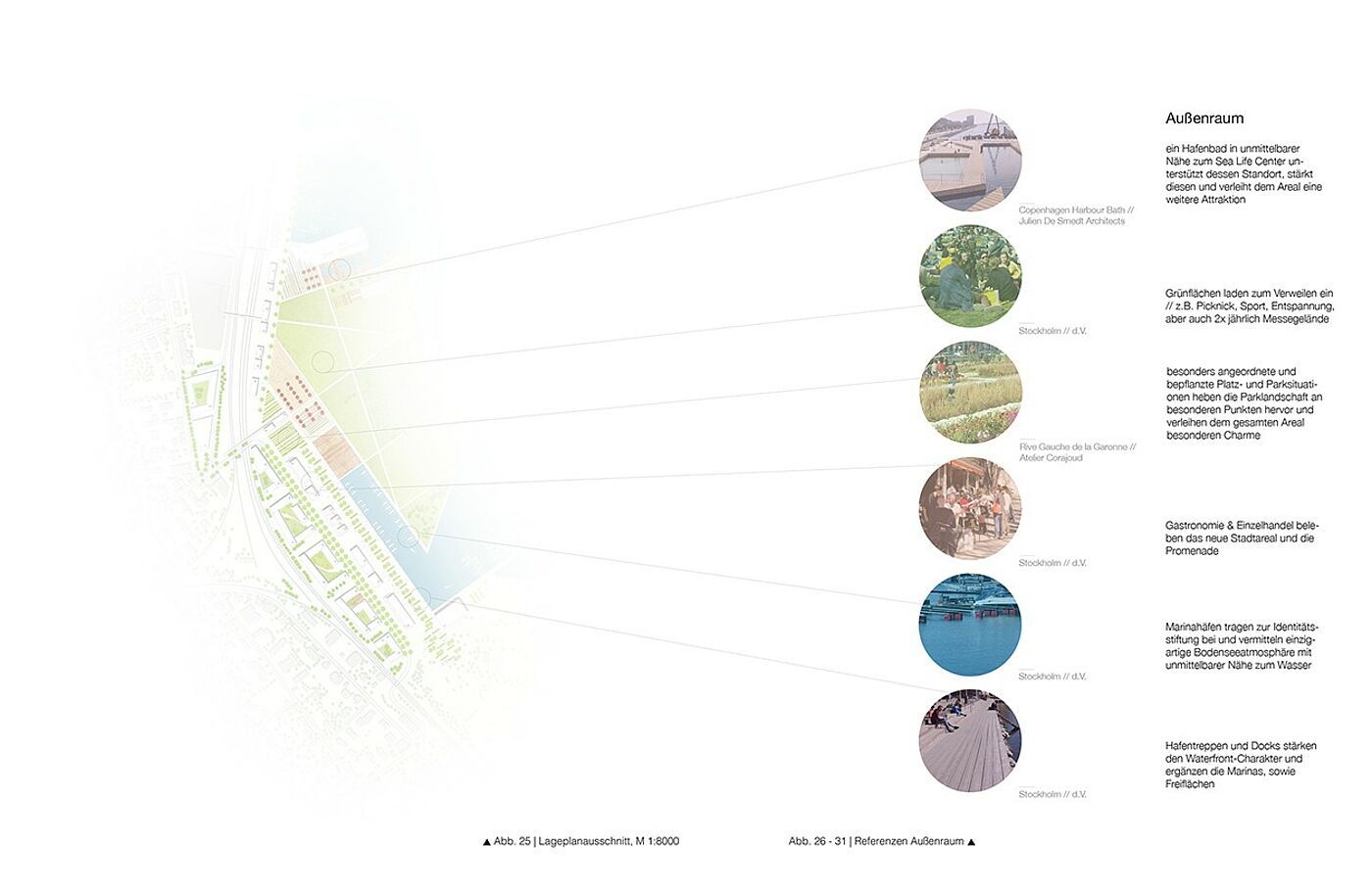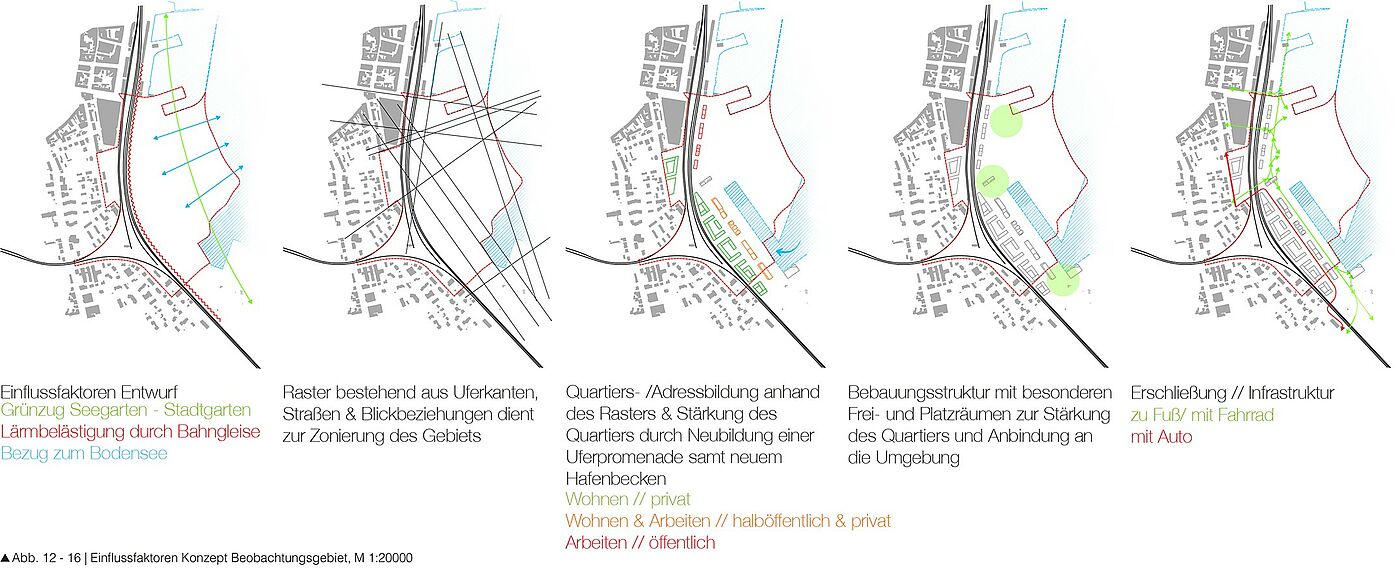 Klein Venedig, das Bindeglied zwischen Konstanz und Kreuzlingen, ist eine aktuell unter Wert genutzte, direkt am Bodensee gelegene Fläche. Das neu konzipierte Seequartier Klein Venedig fügt die Assoziationsräume „Urbane Stadt“ und „Gleisanlagen an der Schnittstelle beider Städte“ zusammen. Mittels einer neuen räumlichen Verknüpfung – ausgehend von dem Stadtgarten im Norden zu dem Seegarten im Süden – wird eine Verbindung beider Städte in diesem Entwurf herausgearbeitet. Differenzierte Raumfolgen und neue Bebauungsstrukturen werden zu einem urbanen Quartier zusammengefügt.
