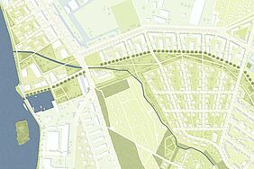 Der Entwurf für das Plangebiet in Berlin-Lichtenberg entwickelt das gewerblich geprägte Areal um das Kraftwerk Klingenberg zu einem Stadtteil, der sowohl den Landschaftsraum stärkt als auch die bestehende, bauliche Struktur aufwertet. Zu diesem Zweck entstehen fünf individuelle Quartiere, die unterschiedlichen Nutzungen und Zielgruppen gewidmet sind. Dabei werden die Quartiere durch den Seepark, die Spree und einen neuen Grünzug miteinander vernetzt. Die vielfältigen öffentlichen Grünbereiche des Entwurfes werden durch eine Vielzahl privater Grünbereiche ergänzt. Ein weiteres, zentrales Element zur Gestaltung und Aufwertung des Freiraums stellt die Promenade entlang der Uferzone dar. Mithilfe der differenzierten Gestaltung der Promenade durch Aufweitungen, Aussichtspunkte, Sitzstufen und Bepflanzungen schafft sie unterschiedliche Intensitäten und Qualitäten entlang der Spree.
