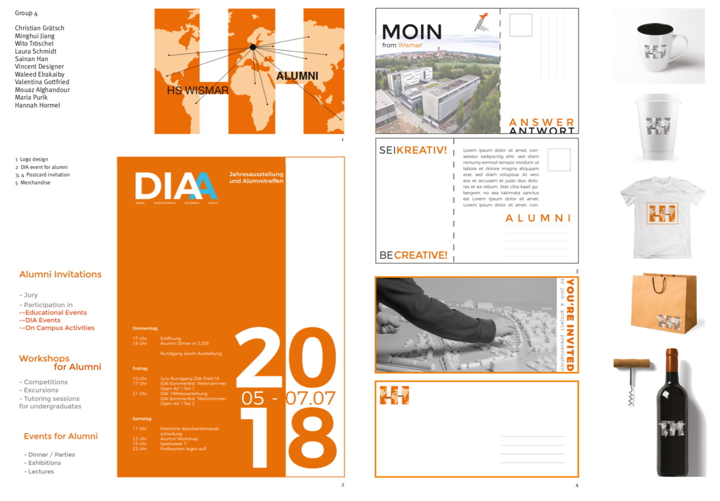 The occasion of the 25th anniversary of architecture studies Wismar has led to reflect the exchange with the alumni. Just celebrating this event and doing it the next time is not enough for us. This led to the idea of using special funds from the DAAD to develop a new exchange platform that helps us cultivate contacts. Now, after finishing our activities and starting a new alumni platform it‘s about taking advantage of the offer and bringing it to life. We hope that we will be able to make the most diverse friendships and develop new ones. With the collected impressions the workshop participants came together in groups to sum up their own wishes for a ‘studio after graduation‘. The first workshop day ended with further intercultural discussions over a glass of wine and traditional German food. Each group spent the second workshop day to materialise their concepts. The goal was to support Alumni connections and encourage new contacts under the motto weltatelierwismar. Would it be better to use a virtual platform or could it be real walk-in space on a campus? Which functions are necessary? Should they push careers or rather revive old friendships? The examples show answers and approaches of some group work.