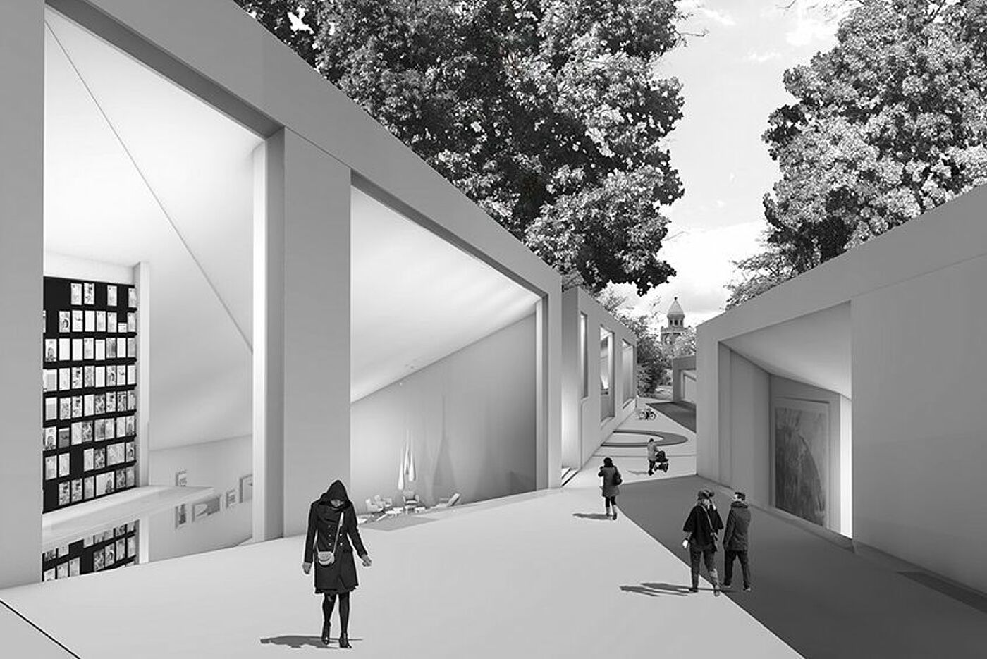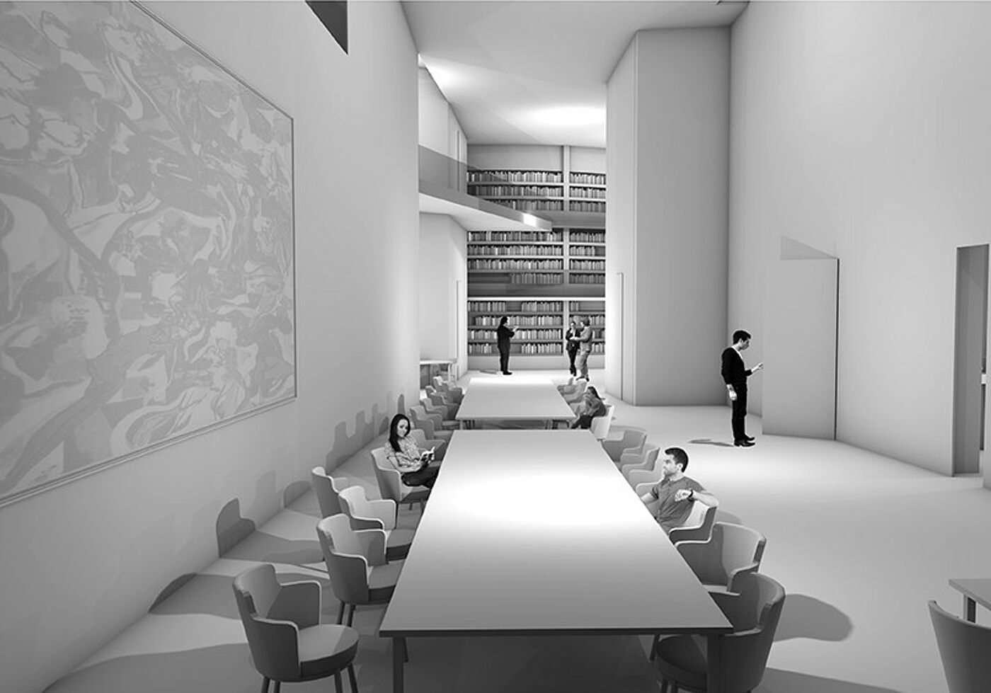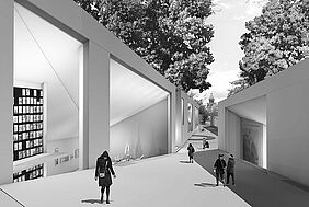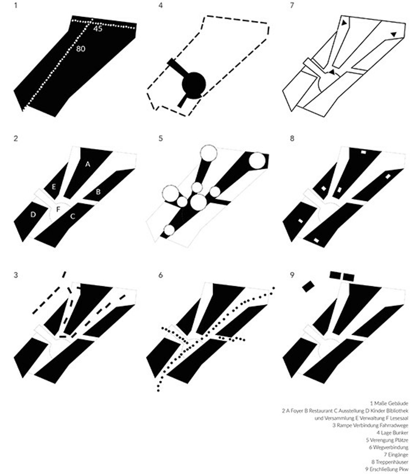 Durch den Bunker, der freigelegt und dessen Äußeres von Innen sichtbar gemacht wird, ist das Konzept der einzelnen Baukörper entstanden, die sich bis in das Erdreich ziehen. Dabei stellt der Bunker das Herzstück der Kunstbibliothek dar. Es ist nicht der erste Augenblick der Betrachtung, der ein Werk vollständig offenbart. Vielmehr sollte Architektur erlauben, an ihr vorbeizuschauen. Die Architektur verbindet sich zwischen Verstecken und Entdecken.