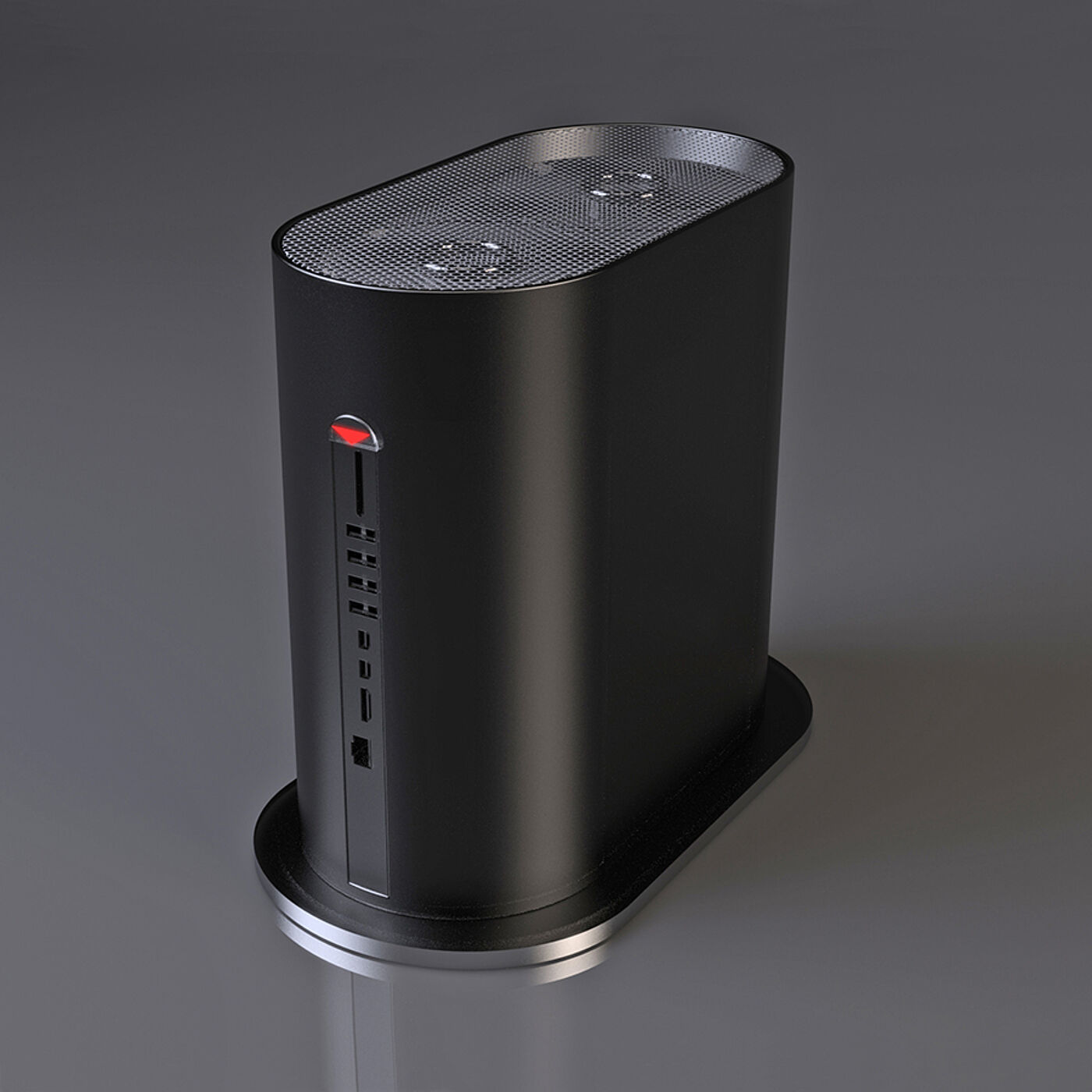 We are looking for a design of a compact computer housing that is capable of appropriately and concisely questioning the conventional formal language of this product category through the accentuated visualisation of semantic repertoire. Which associations harbour the design potential? What stylistic means - also taking into account technological limitations - are available for this?