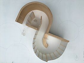 The opposing rooms are connected by a curved corridor that symbolises the (im)finiteness of life. The starting point for the sensual design of the building is the 1925 work "The Kiss" by Pablo Picasso.