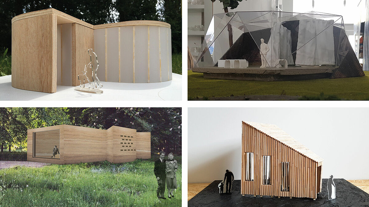 At the beginning of the semester, the students walked through the park, each looking for a suitable place to analyse its genius loci. In the course of the semester, individual designs were developed. Small places of remembrance and commemoration were created, which guide visitors through the park on new paths to experience its nature anew and to get to know it sensually in many ways.