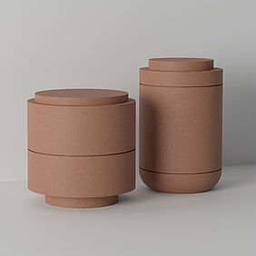 Die entworfenen Urnen von Cora Schmidt bestehen aus Einzelteilen, die individuell zusammenstellbar sind. Entstanden sind zwei unterschiedliche Kollektionen. Diese unterscheiden sich in ihrer Formengebung in eine höhere und schlankere, sowie eine breitere und flachere Kollektion. Nach der Montage können die individuellen Urnen durch eigenständige Bemalungen oder Schnitzereien weiter individualisiert werden. Durch die Arbeit an der Urne und somit die Mitgestaltung des letzten Raumes für eine geliebte verstorbene Person wird den Hinterbliebenen eine besondere Art des Abschiednehmens gewährt, die eine selbstbestimmte und würdevolle Trauer zulässt.