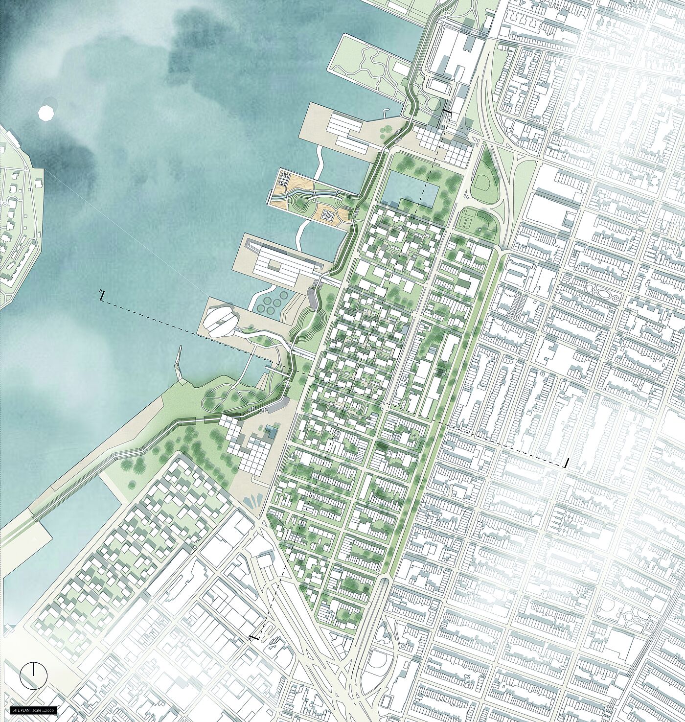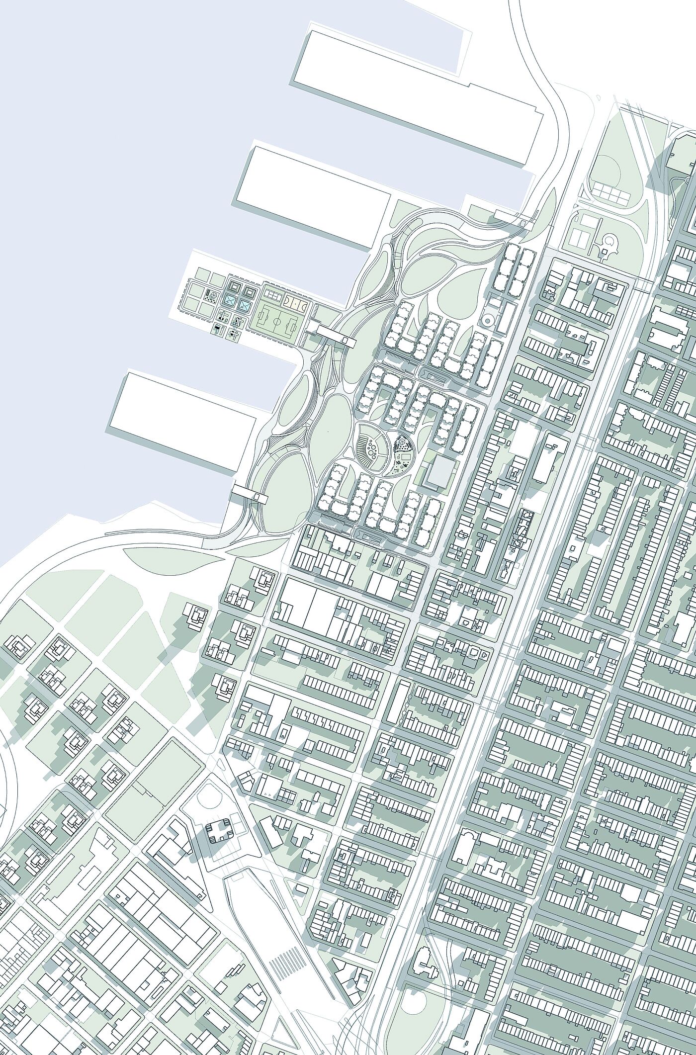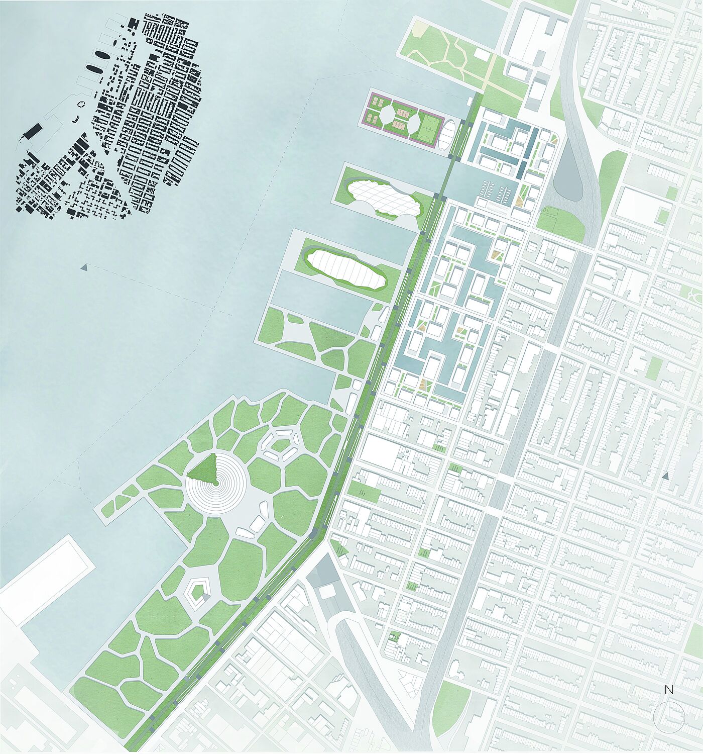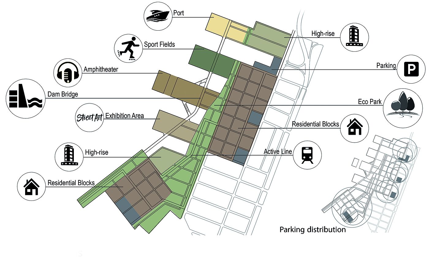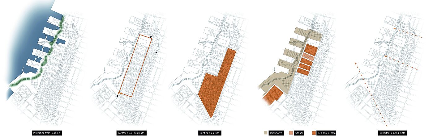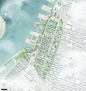 The projects considered both higher-level contexts and the analysis of the site. In addition to the analysis and presentations of historical and contemporary case studies - significant in terms of urban planning and architecture - discussions were held to classify and evaluate what has been seen. The aim of the urban and landscape design with an architectural design project of choice was to open up development potentials, to link fragmented areas with each other, to activate area potentials as well as to develop suitable public space and building typologies in dealing with the special features of the location next to the water.