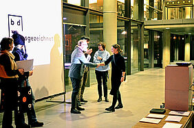 Andreas Nikolaus Börn, Vorsitzender bdia Küste, Silke Wittmann, Stellv. Vorsitzende BDIA Küste und Henrike Becker, Schatzmeisterin BDIA Küste vergaben Anfang Februar im Foyer der Fakultät vier Preise an Absolventen der Innenarchitektur.