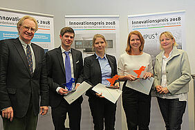 Der Innovationspreis dritter Stufe, dotiert mit 500 Euro, wurde der Absolventin des Bachelor-Studienganges Nautik/Verkehrsbetrieb, Verena Krämer, als auch der Absolventin des Master-Studienganges Architektur, Anke Schneider, verliehen.
