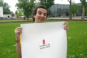 Zu sehen ist auf dem ersten Blick nahezu nichts, lediglich ein knallroter USB-Stift. Erst der knappe Spruch „Das Plakat ist auf dem Stick“ lässt beim Betrachter der Verwunderung ein Schmunzeln folgen. Das analoge Gebilde in Form eines beliebten, alltäglich genutzten Speichermediums verrät eigentlich nichts über den eventuellen Plakatinhalt und zeigt, dass das Digitale nach einem Interpretationshilfsmittel verlangt. Damit ist dem gebürtigen Wismarer eine freche Interpretation des Wettbewerbsthemas gelungen, durch welche die Jury sein Plakat aus 472 eingereichten auswählen und auf den 2. Platz setzen ließ. Frank Schießer studiert an der Hochschule Wismar Kommunikationsdesign und Medien und gehört zu den insgesamt 318 Studenten von 29 Hochschulen, die sich in diesem Jahr um die begehrten Preise beworben haben, was eine Rekordbeteiligung darstellt. Betreut wurde er in Wismar von Prof. Arved Voss, der an der Fakultät Gestaltung lehrt und schon mehrere Preisträger dieses Wettbewerbes hervorgebracht hatte.