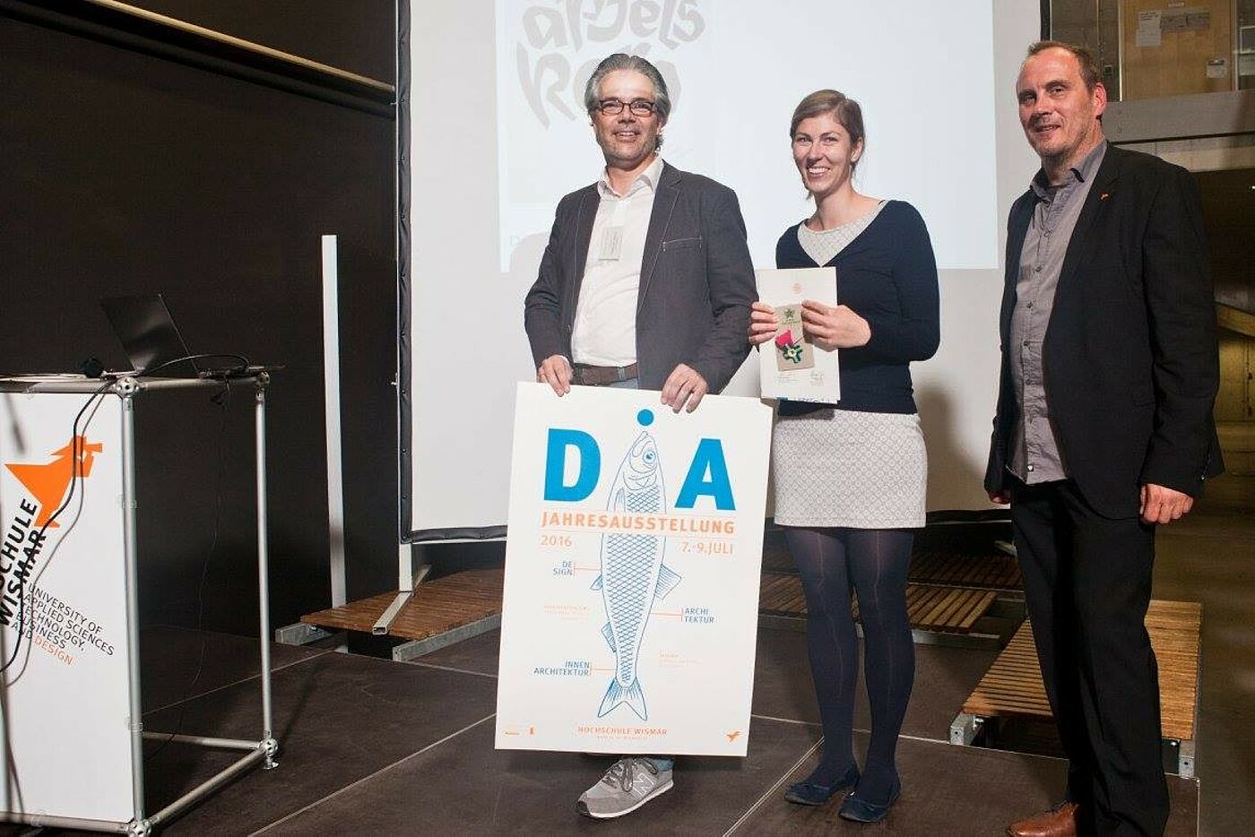Überreicht wurden die Preise durch den Jury-Vorsitzenden Christoph Schild und Prof. Achim Hack, Dekan der Fakultät Gestaltung der Hochschule Wismar.