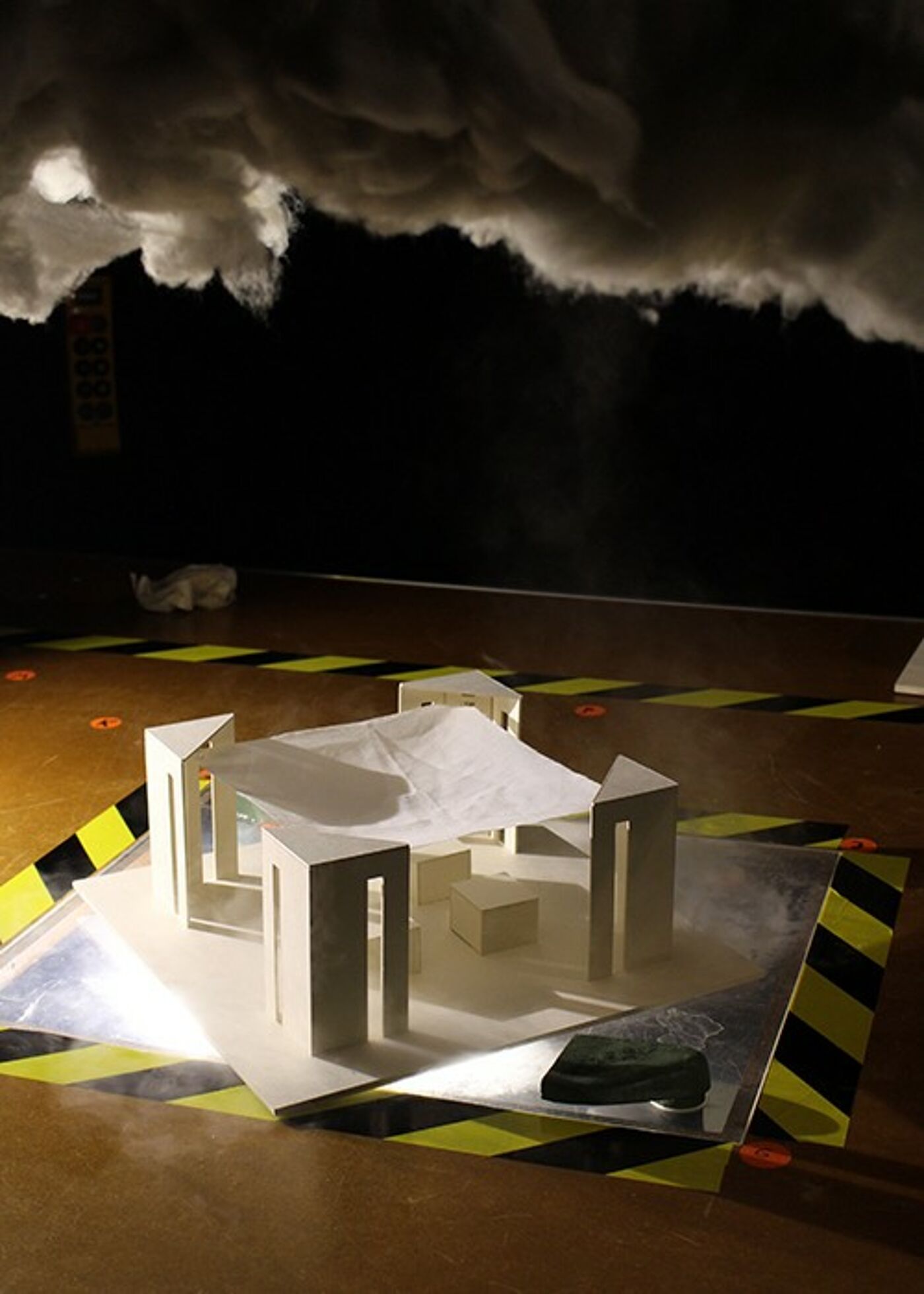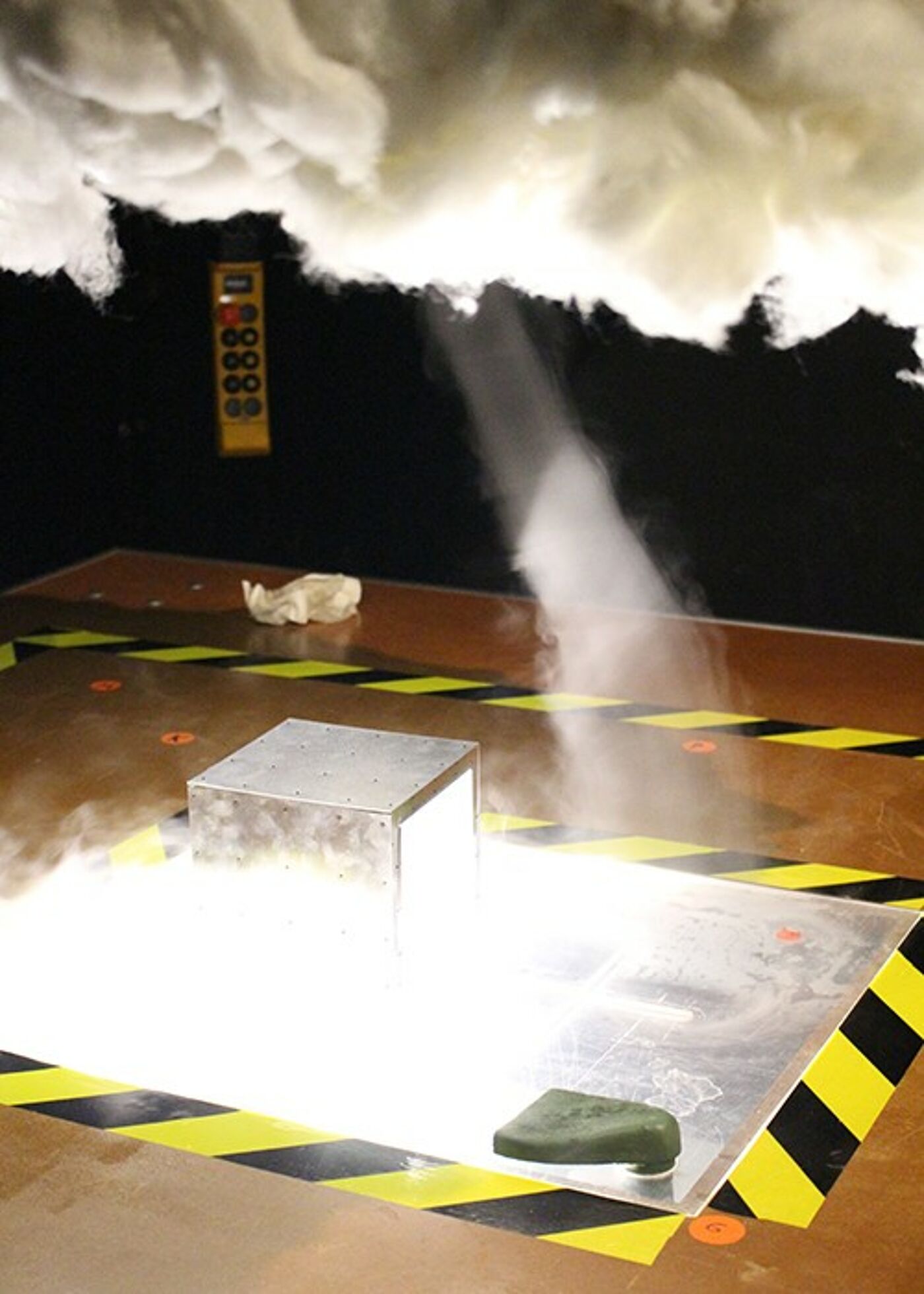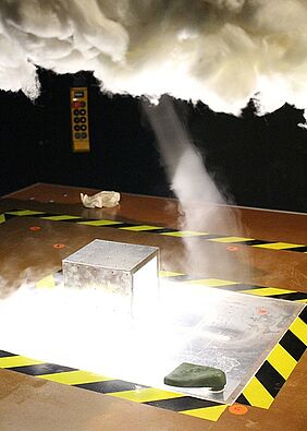 Im DLR in Göttingen konnten die Studierenden ihre Entwürfe im Windkanal auf ihre Standsicherheit hin überprüfen und im Tornado-Schutzraum-Simulator den Ernstfall miterleben. Im Tornado-Simulator simulieren zweit Düsen einen Tornado. Mit Hilfe von Wasserdampf wurde dieser auch sichtbar gemacht. Die Modelle der Studierenden standen dabei auf einer Waage, diese konnte sowohl die horizontalen Kräfte, als auch Kräfte messen, die seitlich auf die Modelle einwirken. In einem weiteren Versuch wurden die Modelle vor eine große Windmaschine gestellt und die Standsicherheit der Modelle unter verschiedenen Windstärken getestet. Das Model der Studierenden Vincent de Graaf und Hausan Kasim wurde einer Windstärke von 65 km/h ausgesetzt, zusätzlich wurden noch Turbulenzen simuliert.