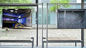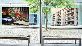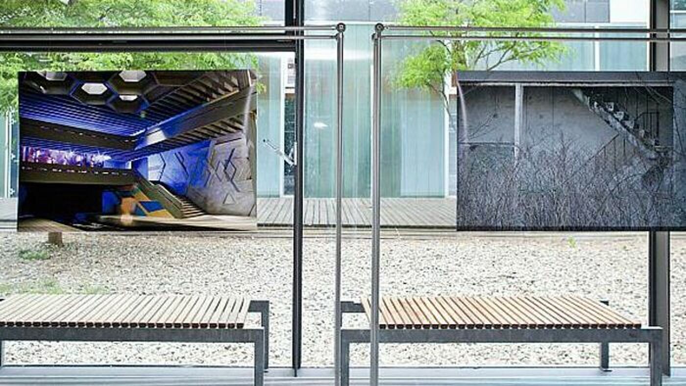 Fotografien der detailreichen und beeindruckenden Utopien Portus vermischen die Studierenden mit Ansichten der architektonischen Elemente und Spielereien, die Sie unweigerlich an Portus denken ließen. Prof. Dr.-Ing. Thomas Römhild freut sich über das studentische Engagement: In der fünfzehnjährigen Geschichte des Studiengangs sei es das erste Mal, berichtet er freudig, dass Studierende selbst auf die Idee einer Ausstellung kommen und diese umsetzen.