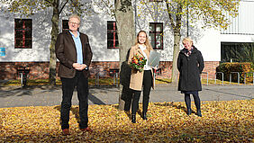 Prof. Dr. jur. Bodo Wiegand-Hoffmeister, Rektor, und Korinna Stubbe, Leiterin des International Office unserer Hochschule, überreichten am Dienstag, dem 26. Oktober 2020, die Urkunde zum mit 1.000 Euro dotierten DAAD-Preis an Sofiia Novokreshchenova. Die Ukrainerin studiert seit September 2019 im Masterstudiengang Architektur an der Fakultät Gestaltung. Besonders positiv hervorgehoben wurden neben ihren hervorragenden fachlichen Kenntnissen ihr Engagement der für die zum Sommersemester 2020 neuangekommenen ausländischen Studierenden. Für sie hatte Sofiia eine App entwickelt, die den Studieneinstieg erleichtern sollte.
