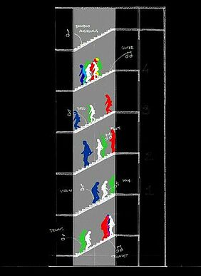 Gruppe 2 – Stair Case Group: Olga Galkova, Fernanda Montecinos, Darío Nuñez, Volha Pakholkava, Natasa Rajic, Menekse Seyma Kaya, Julie Wangsajaya, Linlin Yang