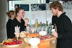 Prof. Michael Rudnik, Studiengangsprecher der Innenarchitektur, Frau Peggy Kastl Dipl.-Ing., Vorsitzende Bund Deutscher Innenarchitekten (BDIA) - Landesverbandes Küste, und Prof. Achim Hack, Prodekan der Fakultät Gestaltung der Hochschule Wismar, waren sich über die gelungenen Ergebnisse der Ausstellung einig. Studierende, Fachpublikum und weitere Gäste genossen anschließend die Ausstellung bei einem Glas Sekt und mediterranem Buffet, gesponsert vom BDIA.