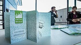 Um nicht der Gefahr zu unterliegen, die Vorgängermagazine nachzumachen, hat sich die neue Redaktion einfach nicht auf bestimmte Inhalte oder Formate festgelegt – sondern Zwischenvarianten gefunden. So ist die erste neue Ausgabe nicht wie zuvor ein gebundenes A5-Heftchen, sondern eine interessant gefaltete Mischung aus Faltblatt, Plakat und Broschüre im Endformat DIN Lang. Durch einen Treppenfalz im Inneren ist das „Plakazin“ blätterbar und lässt durch eine Registratur die versteckten, weggefalteten Inhalte erahnen. Entdeckt haben die Heftemacher das Faltprinzip auf der Buchmesse in Leipzig. Dort präsentieren die Kommunikationsdesignstudenten des dritten Semesters jedes Jahr eigene Arbeiten, ihren Studiengang und die Fakultät Gestaltung mit einem Messestand.Inhaltlich beschränkt sich die erste Ausgabe auf die Vorstellung der einzelnen Gremien der studentischen Selbstverwaltung und ein paar kleinen Beiträgen zum Thema Fahrrad und Fahrradfahren.Das erste Heft des Studentenmagazins „Grüne Wiese“ entstand im Jahr 2003, vor allem als Mitteilungs- und Identifikationsblatt der studentischen Selbstverwaltung. 2008 kaperten überwiegend angehende Kommunikationsdesigner das Heft und erneuerten es grundlegend: von Stil und Selbstverständnis bis Format und Layout. Das Magazin fiel immer wieder durch Aktionen auf, die über die Grenzen des Wismarer Campus hinausgingen: Infos über damals noch rare Twitter-Profile und Facebook-Seiten, Info- oder besser Partystände bei Hochschulveranstaltungen, oder dem damals einzigen Programmheft zum Hochschulinformationstag „GoGo“, später „Campus Ahoi!“. Nach der hundertseitigen Ausgabe 14 verabschiedete sich die Redaktion fast nachfolgerlos. Mit dem kleinen Zwischenspiel einer neuen Redaktion, der „Testsaat“, ging nun die Initiative von einzelnen AStA-Mitgliedern und Kommunikationsdesignern aus. Seitens des AStA bestand der Bedarf nach einem heiteren Mitteilungsblatt. Gleichzeitig bemerkten einige Kommunikationsdesignstudenten im Grundstudium, dass es keine zentralen Informationen aus studentischer Sicht gibt und erinnerten sich an Erzählungen über das „alte“ Studentenmagazin. Eher zufällig fanden diese Gruppen zueinander und bilden nun die neue Grüne Wiese-Redaktion Wie es jetzt weiter geht? „Abwarten, wie die Reaktionen auf die erste neue Ausgabe sind“, reagiert Elektrotechnikstudent Christoph Werner, der zufällig in einem Gespräch in einer Fahrgemeinschaft von der Grünen Wiese Wind bekam und einfach zu einem Treffen ging. „Und dann gucken wir, welche Formate beim nächsten Mal Sinn machen!“ ergänzen die Gestaltungsstudenten Anne Sawall und Steffen Stender. „Und welche Inhalte wir langfristig präsentieren wollen“, schiebt AStA-Referentin Katharina Uecker hinterher.Das „Plakazin“ liegt derzeit überall auf dem Campus der Hochschule Wismar aus. Natürlich sucht die Redaktion noch Mitstreiter aller Fakultäten und Bereiche!