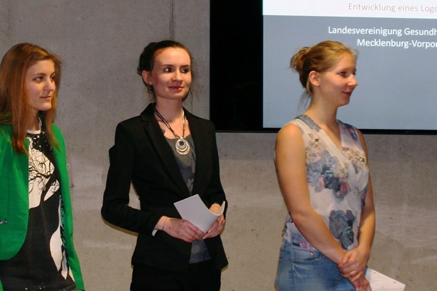 Die dritte und letzte Präsentation zum Thema „Logoentwicklung und Corporate Design“ im Grundstudium des Diplom-Studienganges Kommunikationsdesign und Medien fand am Donnerstag, dem 5. Februar 2015 zum Ende des Wintersemesters 2014/15 in den Räumen der Hochschule Wismar statt. Im Fokus standen Logo-Entwürfe für den Strategierat Wirtschaft-Wissenschaft Mecklenburg-Vorpommern, die Landesvereinigung für Gesundheitsförderung Mecklenburg-Vorpommern e.V. und die Landesverkehrswacht Mecklenburg-Vorpommern e.V.. Einzelne Vertreter der genannten Organisationen waren bei den insgesamt drei Präsentationen der Studierenden des 3. Semesters anwesend. Bereits gedruckte Geschäftsunterlagen oder auch Beispiele für Merchandising-Produkte und Werbeplakate wurden den Partnern zur Ansicht vorgelegt. „Für die Studierenden ist es eine gute Praxiserfahrung vor Geschäftskunden zu präsentieren“, erklärte Dipl.-Gebrauchsgrafikerin Hanka Polkehn, Professorin für Entwerfen Grafikdesign, insbesondere Schriftgestaltung und Darstellungstechniken an der Fakultät Gestaltung der Hochschule Wismar.