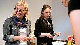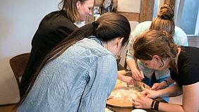 Kürzlich, am Mittwoch, dem 3. Juni 2015, erprobten die Studentinnen das Kochen auf engem Raum und trafen sich privat. Neben selbstgemachten Raviloli, gegrilltem Gemüse und Crème brûlée mit Erdbeeren wurden erste Prognosen zur modernen Küche abgegeben. Im Kontrast dazu waren sie im Mai 2015 im Küchenstudio in Schwerin und trafen dort Steffen Widmer vom Küchengeschäft „Grambow & Widmer“ und Peter Döring, Projektleiter „Der Kreis Anja Schaible Stiftung Leonberg“, eine Stiftung der Gemeinschaft der Küchenspezialisten. Gekocht wurde mit Frank-Peter Krömer von „Krömer, Weinhandel+Kochschule“. Die gesammelten Erkenntnisse sollen im Wintersemester 2015/ 16 als Grundlage für Entwürfe zu dem Thema „Küchenvisionen“ dienen.