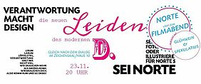 Um nun aber erstmal Interviewpartner, Gastautoren, -Illustratoren und -Fotografen zu gewinnen und auf Thema und Heft aufmerksam zu machen, lädt die aktuelle NORTE-Redaktion nun zu mehreren Überraschungs-Filmabenden „Die neuen Leiden des modernen D.“, an dem es weder um Goethe noch um Plenzdorf, aber um eine angeregte Diskussion zum Thema geht. Interessierte müssen keine Gestaltungsstudenten sein – auch Studenten, Mitarbeiter und Professoren anderer Fakultäten, aber auch Nicht-Studenten sind herzlich eingeladen: