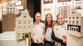 Über den Preis „BDIA ausgezeichnet!“ können sich die Master-Studentin Minh Hanh Duong sowie die Bachelor-Studentinnen Enya Rosing und Marie Reimann freuen. Auf der Preisverleihung am 23. Januar 2018 erhielten Sarah Busching und Sophia Schöttner für ihre Bachelor- bzw. Masterthesis eine Anerkennung.