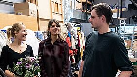 Für den Entwurf des Bühnenbildes, wie auch für Requisite und Kostüme, haben Studierende aus den Studiengängen Innenarchitektur sowie Kommunikationsdesign und Medien der Fakultät Gestaltung der Hochschule Wismar mit dem Ensemble zusammengearbeitet. Ziel war es eine Bühnensituation zu schaffen, die durch wenige Umbauten verschiedene Handlungsorte darstellen kann. Es entstanden unter anderem eine Drehbühne, die mit Licht und Projektionen arbeitet, surreal wirkende Alltagsgegenstände, epochentypische Kostüme aus verschiedenen Jahrhunderten und ein V-förmig geschnittenes Programmheft.