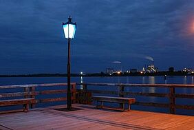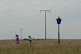 Licht übt einen starken Einfluss auf unsere Sinne aus und bestimmt damit einen großen Teil unserer Wahrnehmung. Die in der Nacht vorgefundene Lichtsituation in der Altstadt von Wismar, mit ihren typischen Laternen und Leuchten, galt uns als Inspiration. Warm, historisch und fast schon surrealistisch wirkte die Atmosphäre auf uns. Der Versuch einer Wahrnehmungsverschiebung durch Änderung der Beleuchtung entstand und wurde auf verschiedene Orte und Situationen übertragen. Der Nachbau einer historischen Wismarer Straßenlaterne wurde realisiert. Viel größer und blau scheinend, taucht sie typische und untypische Orte der Hansestadt in ein neues Licht.