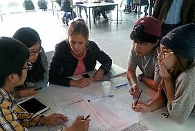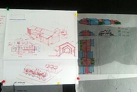 In sechs Arbeitsgruppen aufgeteilt präsentierten die Studierenden am Ende des Workshops ihre Nutzungskonzepte für das „Haus 9“. Angefangen vom „International Loft“ über das „Uni-Brauhaus“ bis hin zur „Cultural Exchange Hall“ zeigten sie unterschiedlichste Ansätze auf, um das Bestandsgebäude energetisch sinnvoll zu ertüchtigen.