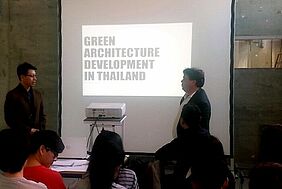 Insgesamt 36 Studierende aus zehn Nationen haben sich über nachhaltige Architektur ausgetauscht. Neben Bachelor- und Master- sowie Austauschstudierende aus Wismar nahmen 15 Bachelorstudierende aus Thailand an dem einwöchigen Workshop teil.