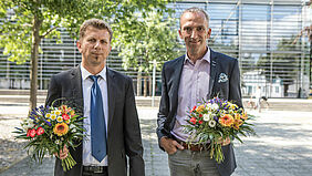 Professor Dr.-Ing. Roland Larek (links) wird ab dem 1. September 2019 erstmals das Amt des Prorektors für Forschung antreten, während für Professor Dr. rer. pol. Michael Schleicher die dritte Amtszeit als Prorektor für Bildung beginnt. Quelle: Hochschule Wismar/K. Baldauf