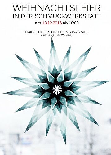 Weihnachtsfeier in der Schmuckwerkstatt | Auch in der Schmuckwerstatt in Haus 7 b wird es weihnachtlich, vor allem am Dienstag, 13. Dezember ab 18…