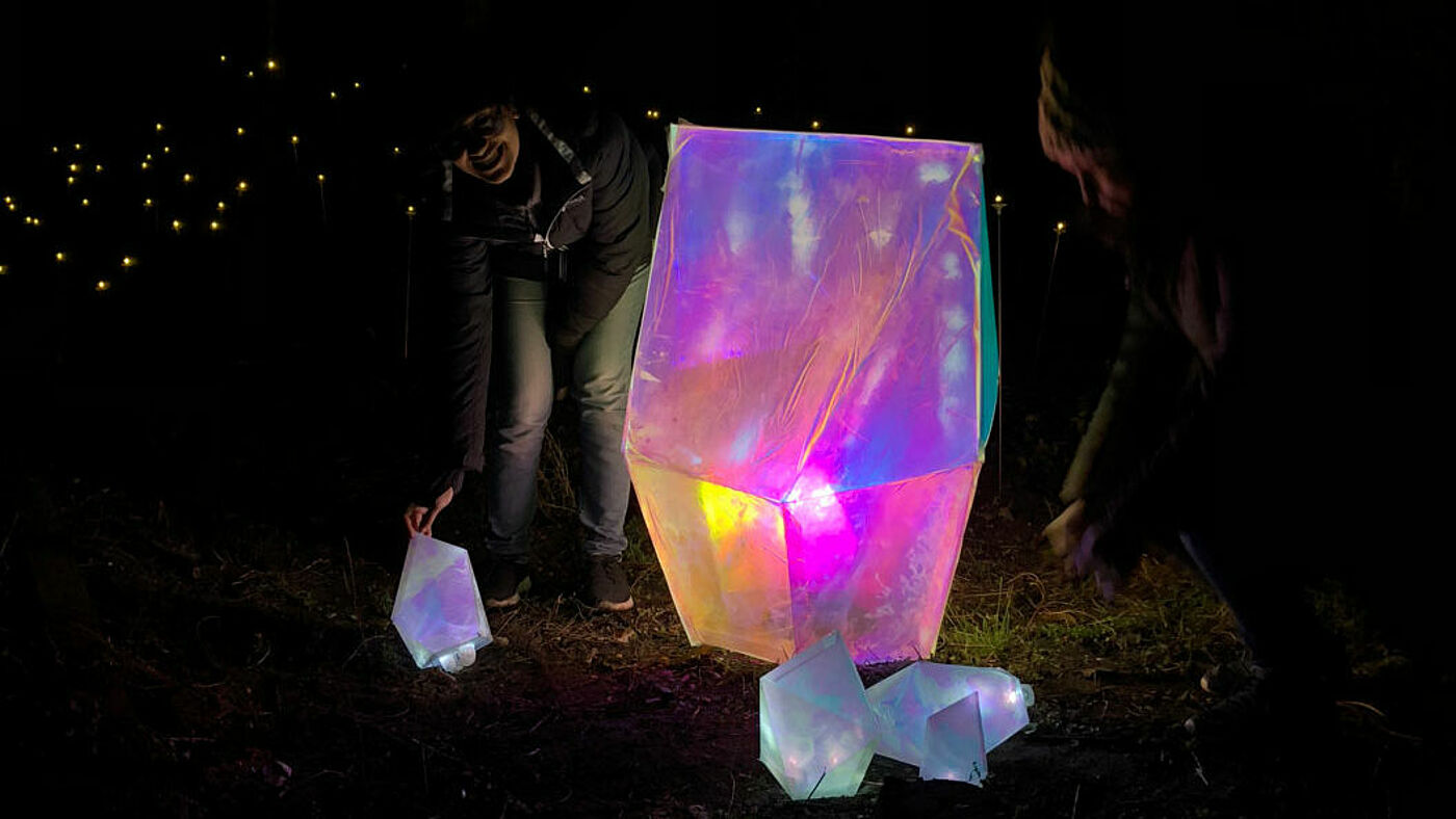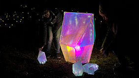 Bis um rund 21.30 Uhr sind alle Interessierten herzlich eingeladen sich die Lichtinstallationen anzuschauen. Betreut werden die internationalen Studierenden durch Prof. Michael Rohde.