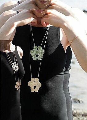Fotografiert und collagiert wurden die Schmuckstücke von Friederice Gorzynska.