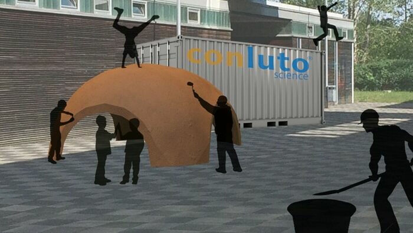 Ganztägig (10–16 Uhr), Bau eines architektonisch und statisch besonderen Gewölbes aus Lehmfliesen in Katalanischer Mauertechnik Bauplatz Campus, zwischen den Häusern 7b und 7c