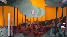 Die Spielwand „Wald“ für die Kita „Wellenreiter“ wurde von Studierenden der Fakultät Gestaltung in der Entwurfsphase in einem Rendering skizziert. Quelle: Hochschule Wismar, Projektgruppe „Touch me“