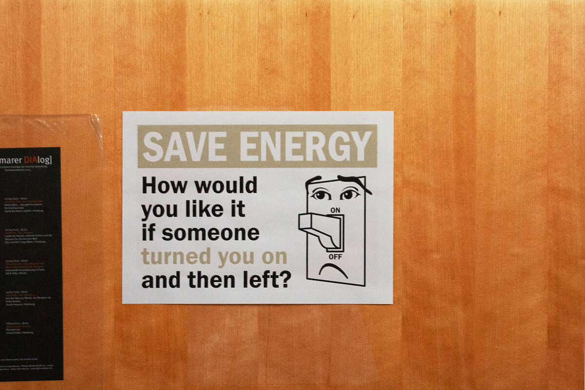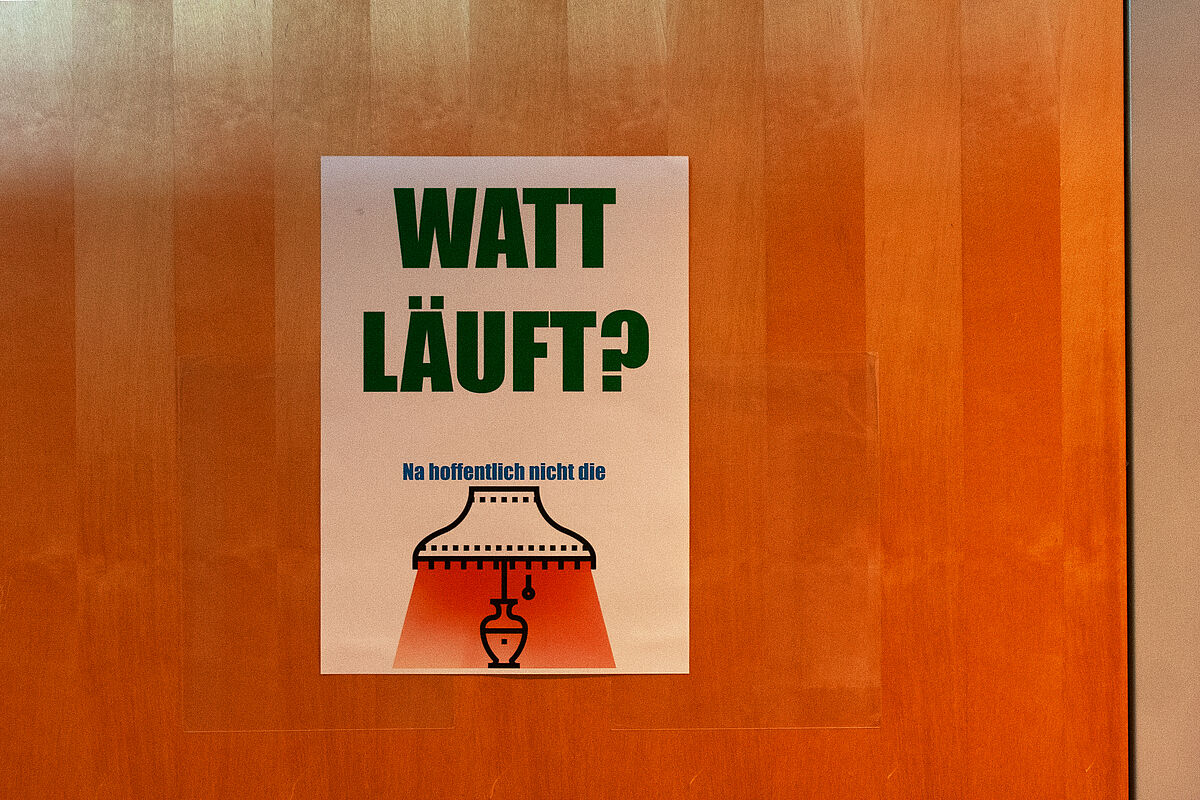 Unsere Seminarräume sind Orte voller Ideen, Diskussionen und manchmal auch hitziger Debatten. Damit dort nicht nur die Köpfe rauchen, sondern auch verantwortungsvoll mit Energie umgegangen wird, sind Plakate entstanden, die mit einem Augenzwinkern daran erinnern sollen, was im Alltag schnell vergessen wird: Licht und Beamer ausschalten, Fenster schließen, Heizung runterdrehen. Oft bleiben Räume offen zurück – beleuchtet, beheizt, belüftet, als würde die nächste Sitzung schon heimlich beginnen. Die Plakate laden dazu ein, Verantwortung zu übernehmen – nicht mit erhobenem Zeigefinger, sondern mit einem Lächeln. Denn Nachhaltigkeit beginnt im Kleinen. In diesem Sinne: Wer zuletzt geht, hat die Ehre. 💡