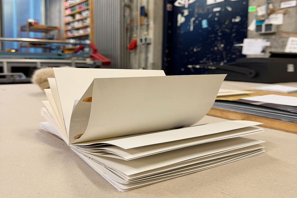 Notizblöcke und Skizzenbücher aus alten Plakaten und Postern. In einem Kurzworkshop wurden aus nicht mehr genutzten Plakaten und Postern neue Notizblöcke und Skizzenbücher gefertigt. Unter Anleitung der Werkstattleiterin Franziska Schaum sind sieben ganz unterschiedliche, individuelle Arbeiten entstanden. Der Workshop setzte sich mit der Frage auseinander, wie sich der vorhandene Papierbestand sinnvoll weiterverwenden lässt und wie aus vermeintlichem Altpapier neue, praktische und ästhetische Objekte entstehen können. Die Idee werden wir auf jeden Fall weiterverfolgen.