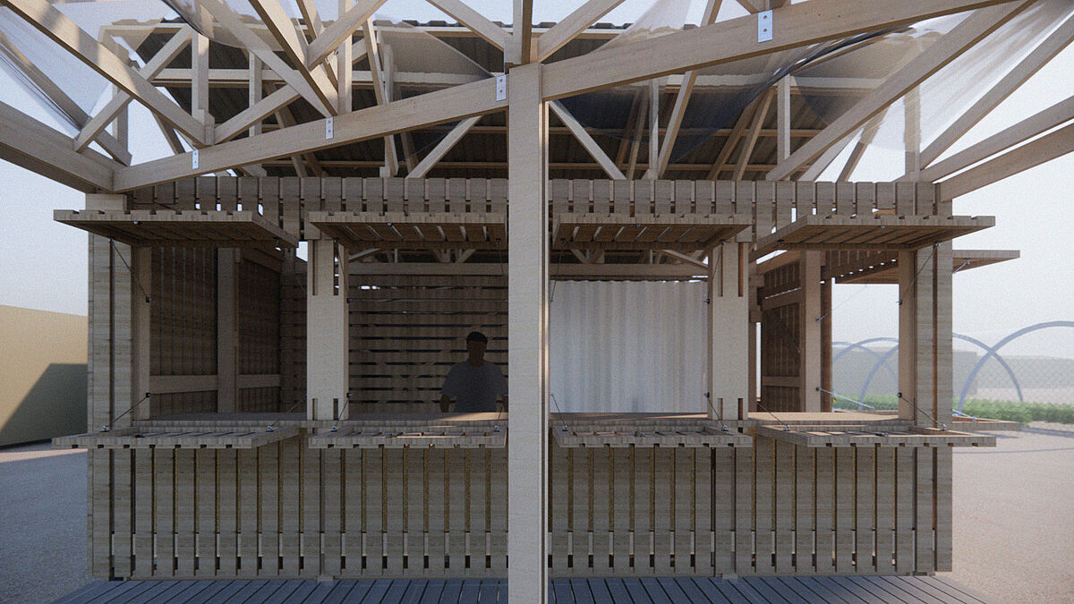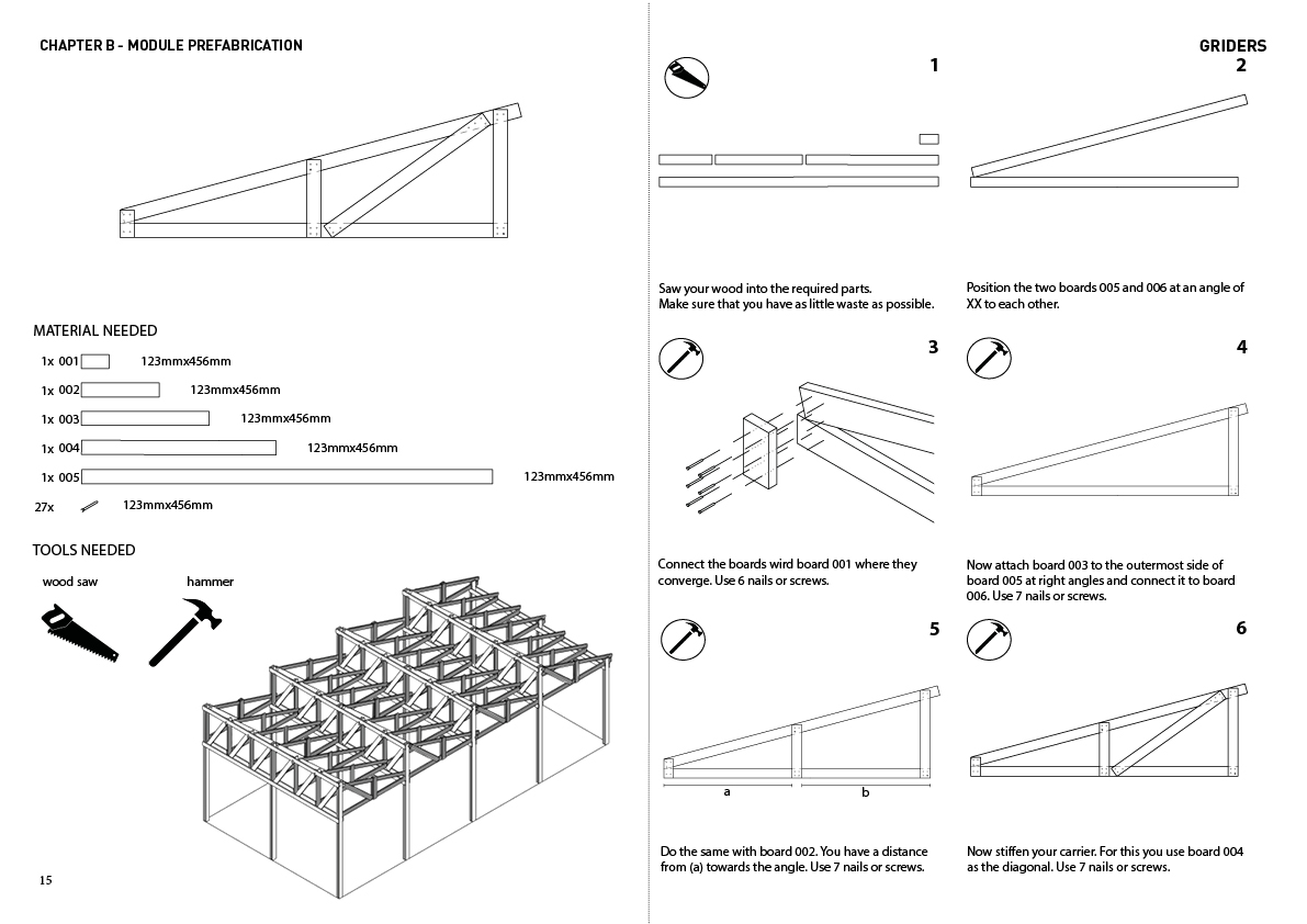 The students from Wismar checked their solutions with a prototype test structure in Germany and translated their ideas into a detailed"construction manual". This manual and the modular logic of the building should, on the completion of the semester, enable the cooperative to transfer the knowledge they have collected to construct other properties and to refine the design to meet the needs of future sites.
