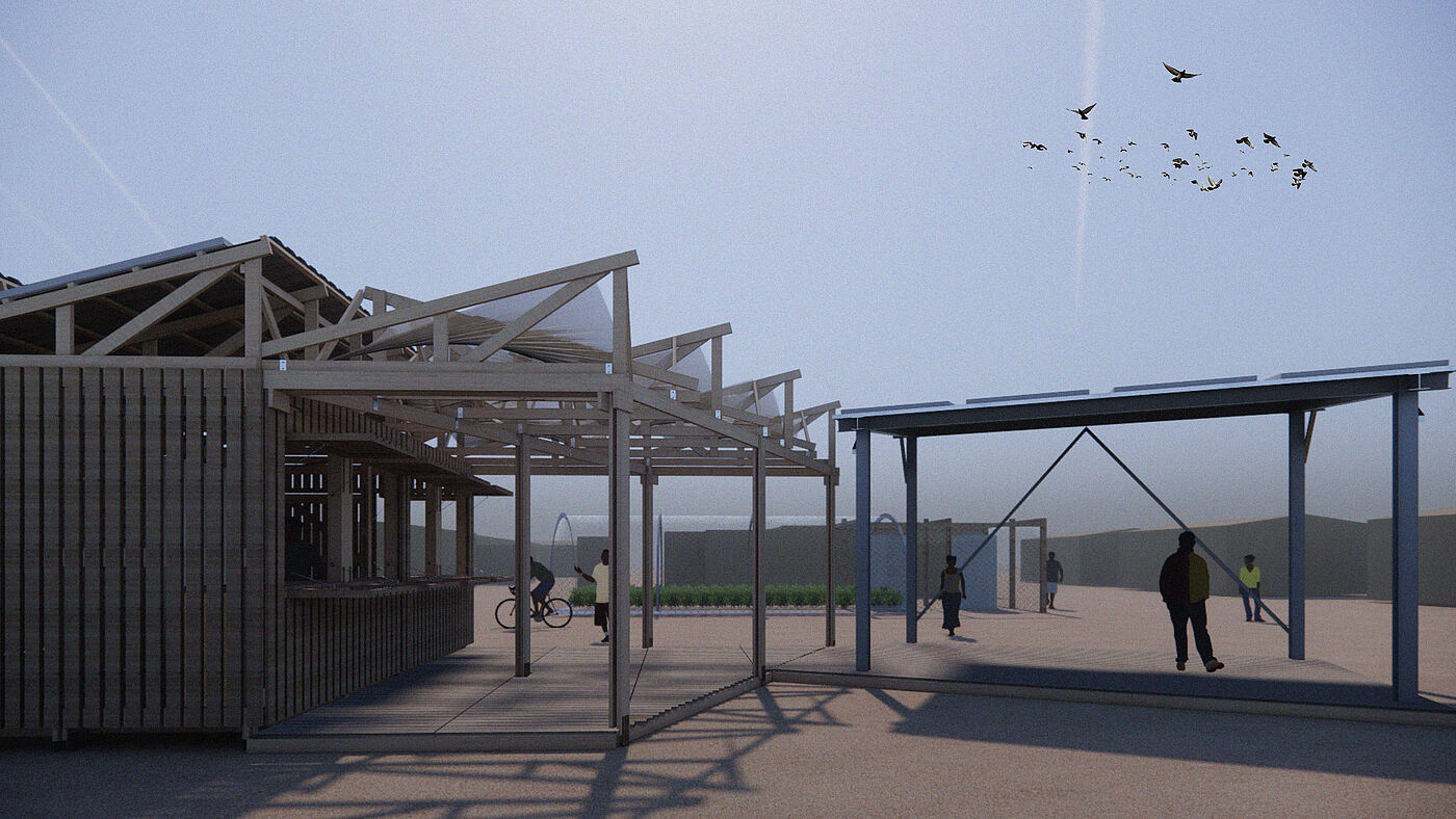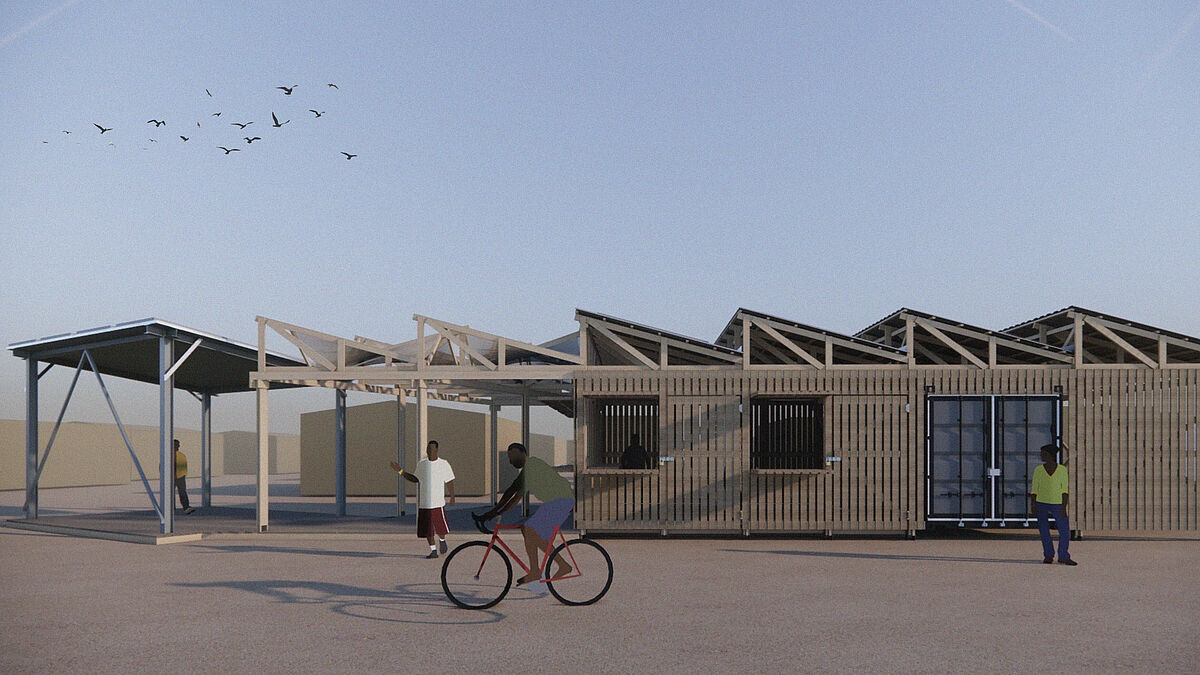 To continue the successfully established intercultural exchange and knowledge transfer between Hochschule Wismar and our South African partners, weekly digital meetings with the KwaZakhele township cooperative and the Port-Elizabeth artisan PE college helped to define on site needs and the design for a small, modular neighborhood building. The implementation planning was worked out and documented by the German architecture students in such a way that all connection details, dimensions, and prefabrication elements could be built independently by the users on site with the help of the PE college.